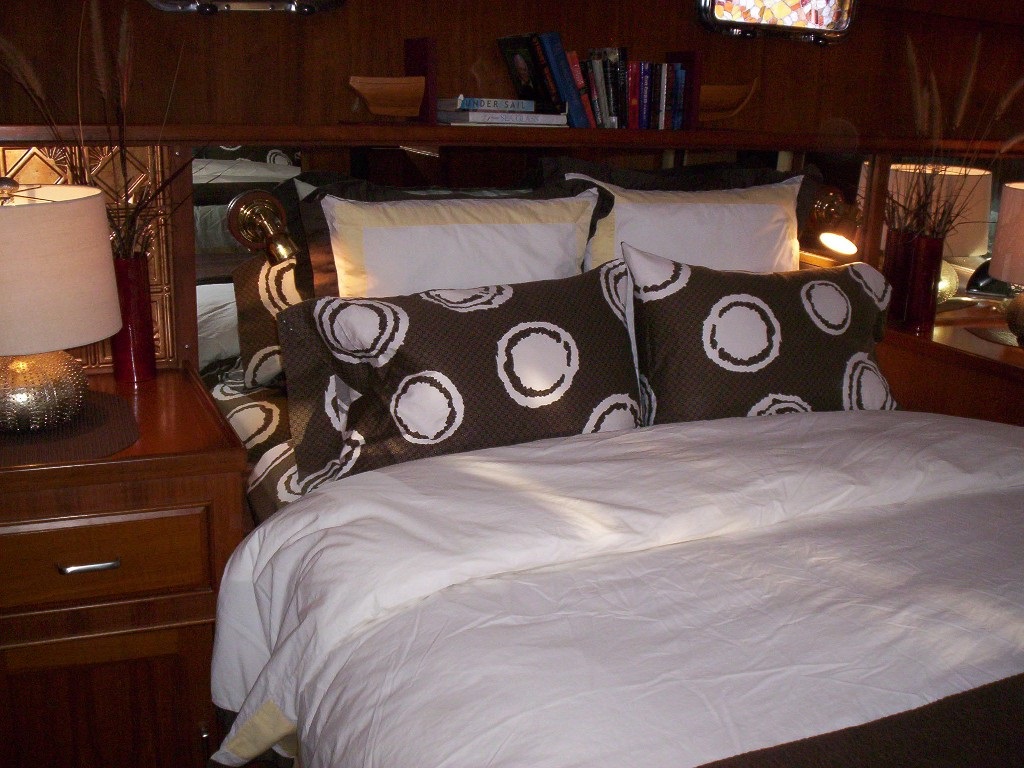 The Green Turtle II can accommodate 2 to 6 guests. She has two private queen staterooms with en suite bathrooms and showers and the salon can accommodate two people on a full queen sleeper sofa. Breakfast can be enjoyed in your cozy dinette or on the aft deck.